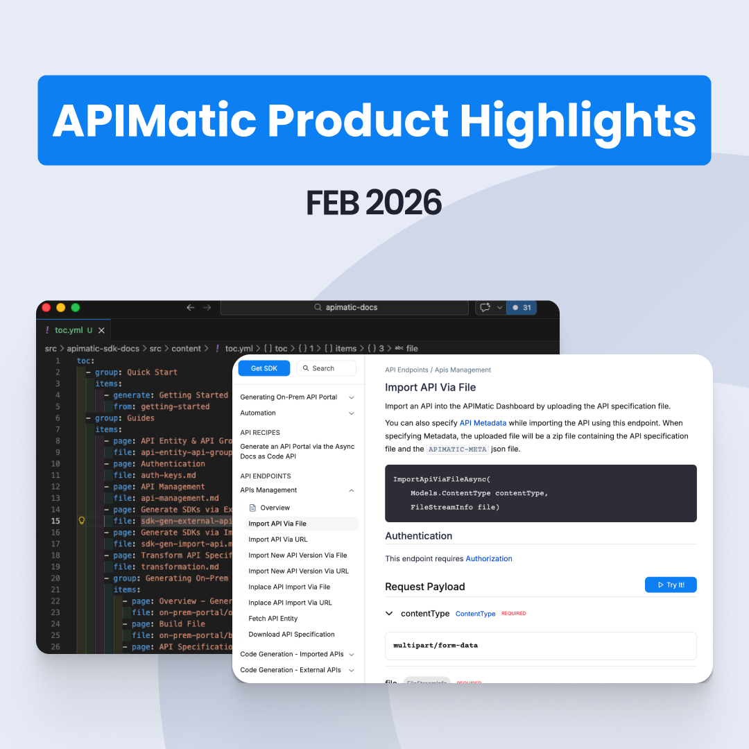 This month, APIMatic’s API Portals got easier to navigate and faster to recover from auth errors: there is more fine grained control over the content...